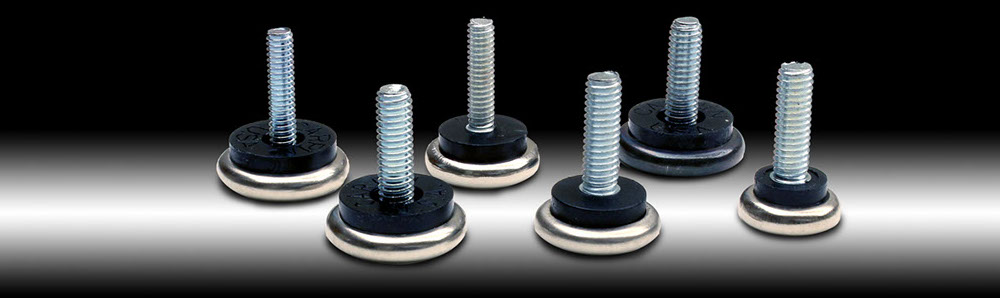 Adjustable glides with metal base from Carpin provide an inexpensive leveling solution for many different applications, including desks, tables, shelving units, filing cabinets, racks, workbenches, non-movable chairs, and more.